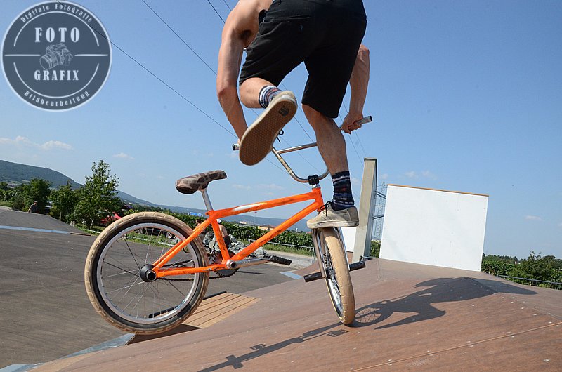 Die erste Fahrt im Skatepark Kottingbrunn. BMXer testen die Rampen und zeigen Ihre Moves,